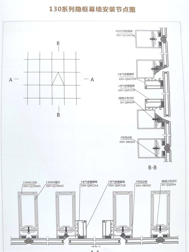 130系列隱框幕墻安裝節(jié)點圖
